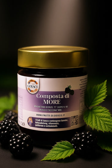 Composta di Mora (95% Frutta) | Lavorazione artigianale. Ingredienti: 95% Lamponi, solo un pizzico di Zucchero di Canna (Conservazione Naturale). Ottima per: gelato, yogurt, ricotta, dolci, torte, formaggi, e in abbinamenti salati (risotti, carni). Gusto intenso e genuino.